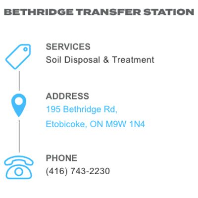 A water-based process using chemical and physical separation to remove organic, inorganic, and toxic contaminants from soils. York1 currently has a soil processing facility (Bethridge) in Toronto, ON where soils contain concentrations of benzene, styrene, toluene, vinyl chloride, xylene, etc. Soils with high concentrations of silt and clay tend to carry the highest concentration, and often require further treatment (ex. thermal destruction) or disposal in a landfill. The US Environmental Protection Agency states that these facilities require a source of process water, commercial electrical power, permits for wastewater discharge, approval of land use, and in remote areas; road construction.